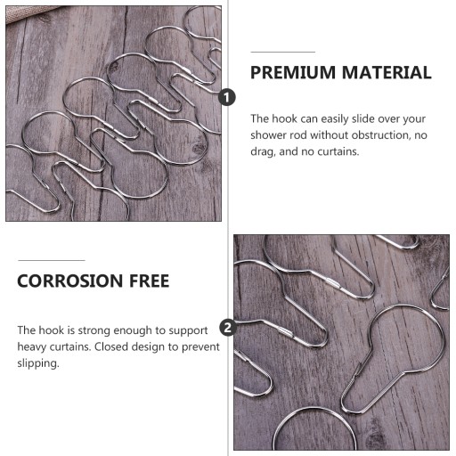 ✅Zamknięte haczyki są wykonane ze stali nierdzewnej, nierdzewnej i polerowanej. Haczyki ze stali nierdzewnej będą lśnić od odbicia światła i dodadzą uroku Twojej zasłonie prysznicowej.