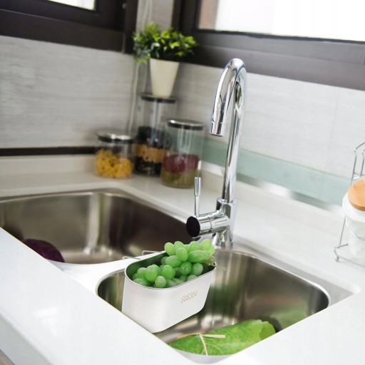 ✅Kosz ociekowy zlewu kuchennego można łatwo zawiesić na krawędziach zlewu kuchennego, aby ułatwić odsączanie warzyw lub owoców po umyciu.