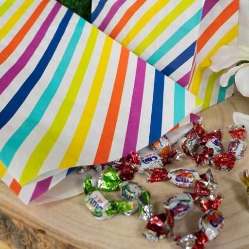 10 БУМАЖНЫХ ПАКЕТОВ 16х8х27см РАЗНОЦВЕТНЫЕ С ПОЛОСАМИ ДЛЯ СЛАДОСТЕЙ