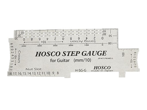 HOSCO Step Gauge to miarka idealna dla wszystkich profesjonalnie zajmujących się gitarami. Nadaje się nie tylko do ustawienia gitary ale zmierzy też wysokość progów oraz wysokość nacięć na struny w siodełku gryfu. Przydaje się również do zmierzenia głębokości gniazda na siodełko mostka w gitarach akustycznych oraz głębokości nacięć na progi w podstrunnicy.