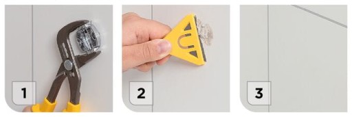 W razie potrzeby TigerFix łatwo usuniesz ze ściany. Ściągnij akcesoria, przy pomocy klucza francuskiego złap i delikatnie przekręć stopkę aż odczepi się ona od kleju. Pozostałości kleju usuniesz przy pomocy szpachelki.