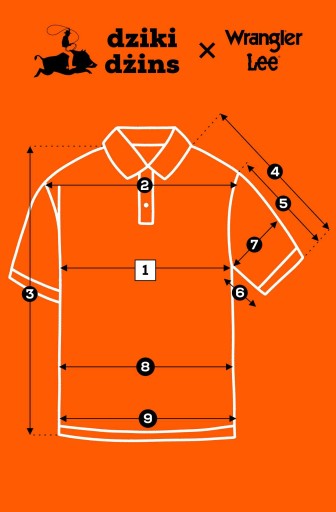 JAK MIERZYĆ? Porównaj wymiary z podobną, dobrze dopasowaną polówką. Rozłóż ubranie na płaskiej powierzchni z równo schodzącym się przodem i tyłem. W pierwszej kolejności zmierz szerokość pod pachami 1. Pozostałe wymiary są pomocnicze.