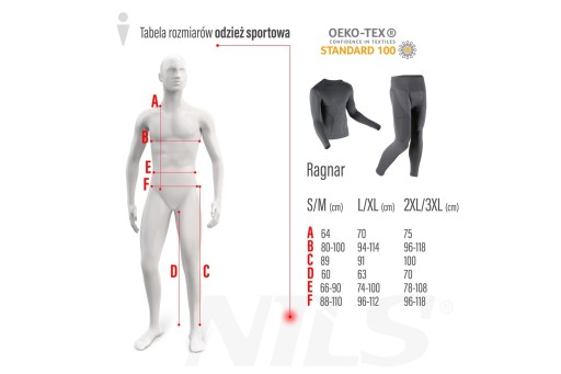 Ragnar Długość całkowita koszulki Klatka Długość całkowita spodni Długość spodni od kroku Pas Biodra S/M 64 cm 80-100 cm 89 cm 60 cm 66-90 cm 88-110 cm L/XL 70 cm 94- 114 cm 91 cm 63 cm 74-100 cm 96-118 cm 2XL/3XL 75 cm 96- 118 cm 100 cm 70 cm 78-108 cm 96-118 cm Uwagi: 24 miesięczna gwarancja