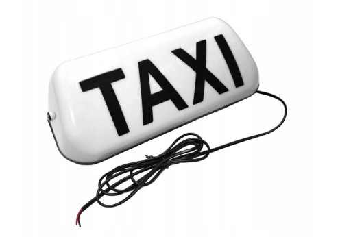 Lampa kogut z napisem TAXI w kolorze białym mocowana na 2 prostokątne magnesy w osłonie gumowej