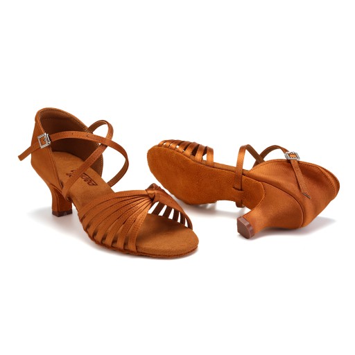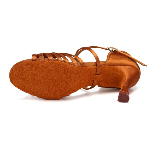 Танцевальная обувь танцевальная комфортабельная латиноамериканская коричневая 7,5 см