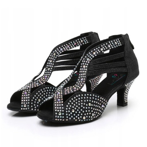 ТАНЦЕВАЛЬНАЯ ТУФЛИ ДЛЯ ЛАТИНО, ЧЕРНЫЕ, С ДЕКОРИРОВАНИЕМ, 6 см
