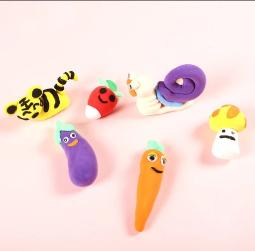 Zawiera 12 różnokolorowych mas, które są miękkie, elastyczne i niebrudzące.