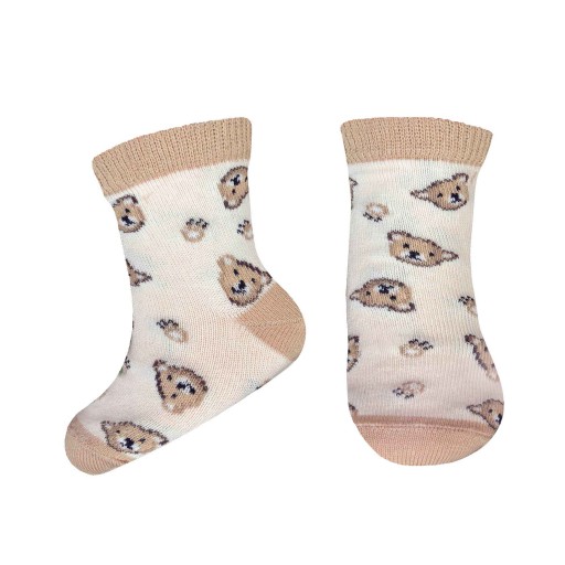Skarpetki dziecięce bawełniane wzorowane z misiami, ecru, Milusie, r. 31/34