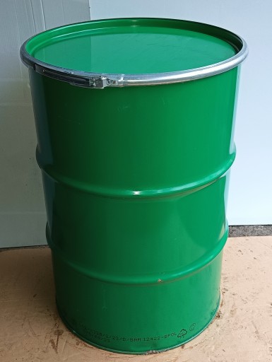 Solidna beczka stalowa 210L z grubej blachy w bardzo dobrym stanie (po jednokrotnym użyciu- jak nowa). Beczka posiada wieko z uszczelką i klamrę dzięki temu może być szczelnie zamykana.