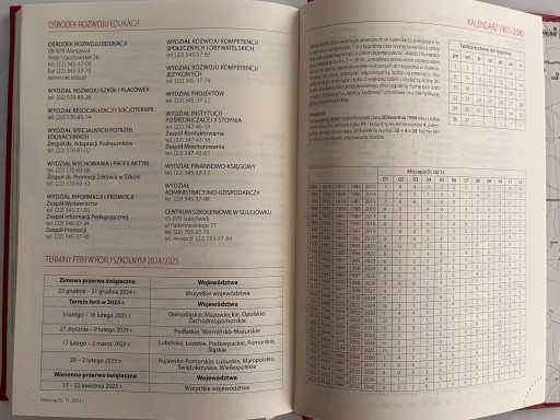 - kalendarz roku szkolnego 2024/2025 - np. ferie, i inne przerwy świąteczne