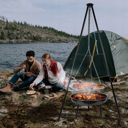 Przenośny - Z paleniskiem - Regulowana wysokość rusztu - Stabilny - 2w1