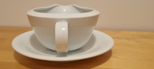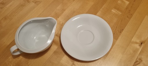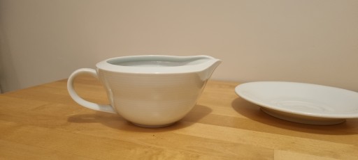 W ofercie porcelanowa sosjerka portugalskiej znanej na świecie marki SPAL. Biała w nowoczesny delikatny szary dekor (paski). Pojemność 300 ml. Nowa, produkt pełnowartościowy, bez ubytków i wad ukrytych, ostatnia sztuka kolekcji sklepowej.