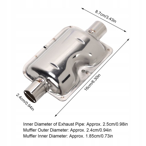 • Średnica zewnętrzna tłumika: ok. 2,4 cm/0,94 cala