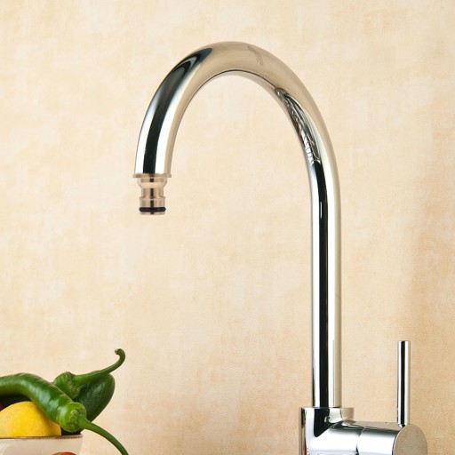 Adapter kranu przyjmuje wewnętrzny i zewnętrzny drobny wzór zębów, co umożliwia szybkie i wygodne połączenie.
