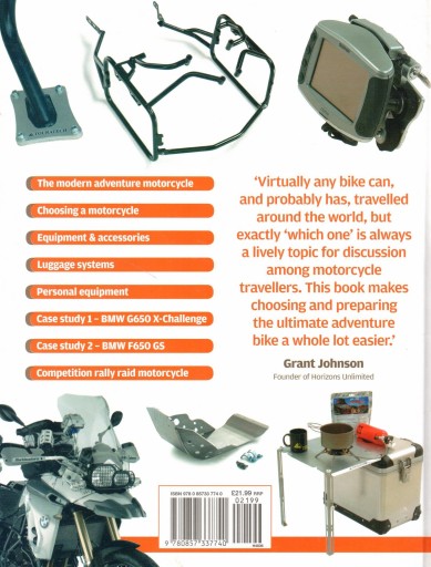 Though some of the top adventure bikes currently on sale could roll off the showroom floor and carry you just about anywhere in the world, it is human nature to tweak, enhance and personalise your chosen machine before heading off. From simple questions such as the choice of tyres and the preferred luggage system, to more complex options such as navigation and communication equipment, there are myriad choices. This book makes choosing and preparing the ultimate adventure bike a whole lot easier.