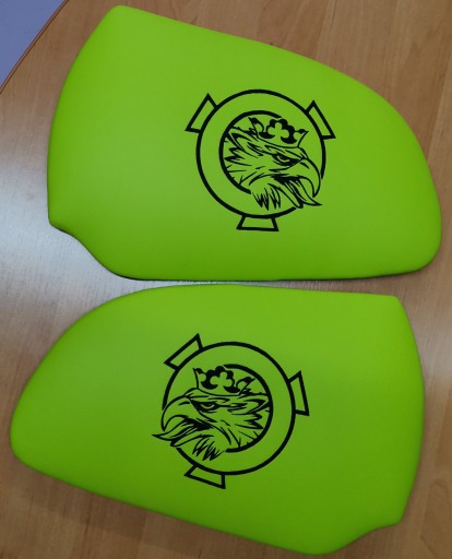 Tapicerka przedstawiona na zdjęciach wykonana jest z gładkiej jasno zielonej (limonkowej) ekoskóry na twardym drewnianym podkładzie. Posiada efektowny haft w kolorze czarnym. Bardzo prosty montaż za pomocą 3 śrub które są zamocowane na stałe z lewej strony tapicerki (śrubka+nakrętka).