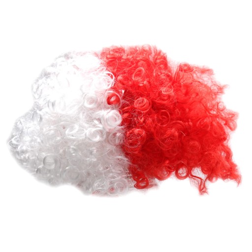 Kompletujesz akcesoria na ważne sportowe wydarzenia? Zbliża się MECZ? Mistrzostwa Świata lub Europy? Patriotyczna peruka w formie klasycznego zakręconego Afro w kolorze biało-czerwonym to obowiązkowy gadżet każdego Kibica! Włosy zaczepione są na rozciągliwej siatce - nie spadają z głowy!