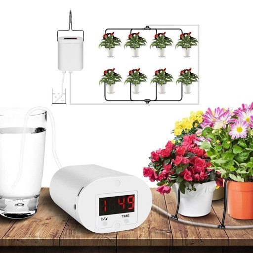 - 🌻Nie wymaga kranu i wspiera ochronę przed niedoborem wody. Może automatycznie podlewać rośliny i przestać działać po wyczerpaniu się wody, bez uszkodzenia pompy i bez zagrożenia.