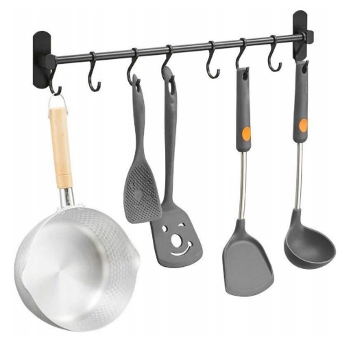 Wieszak przybory kuchenny reling uchwyt stal 8 hak