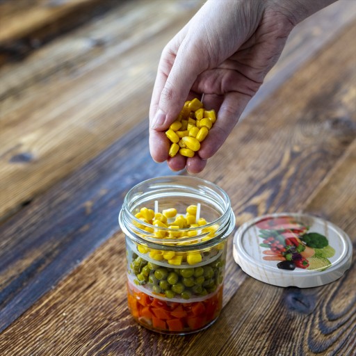 Warstwowe przetwory i wygodne odsączanie — docisk idealnie sprawdzi się również do tworzenia warstw i rozdzielenia różnych składników, którymi wypełnia się słoik. Przy jego użyciu z łatwością odsączysz również warzywa od zalewy lub owoce od soku.