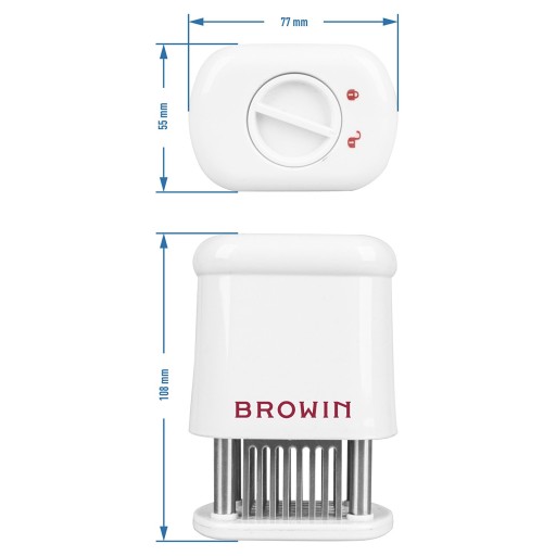 - Ergonomiczny i bezpieczny kształt - umożliwia nakłuwanie mięsa bez użycia dużego nakładu siły, zabezpieczenie chroni zaś przed niechcianym skaleczeniem i wysuwa ostrza dopiero po przyciśnięciu urządzenia do potrawy lub blokuje je na stałe!