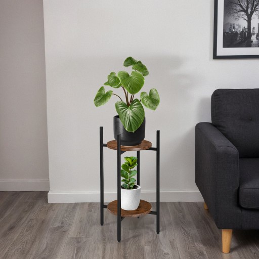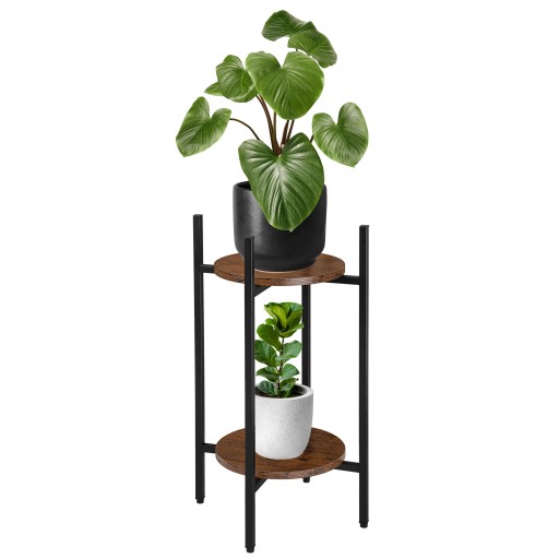 - ✅ Laminowane półki w kolorze postarzany dąb: Dwie półki o średnicy 25 cm, oferujące dużo miejsca na rośliny.