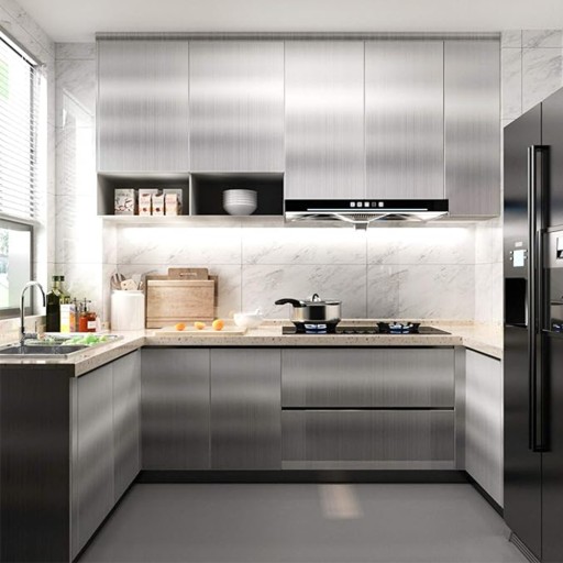 Plastik pokryty klejem foliowym może zaktualizować szafki kuchenne, blaty, półki, ściany, spiżarnię, zmywarkę, blat zmywarki, okap piekarnika, lodówkę, może być bardzo skuteczny Rozświetl cały obszar.