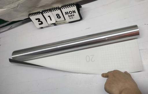 srebrną tapetę można łatwo zainstalować, nie trzeba kupować kleju. Wystarczy odkleić spodnią warstwę tapety foliowej, przykleić ją na płasko gumową szpatułką bez pęcherzyków powietrza, następnie przyciąć do odpowiedniego rozmiaru, podgrzać narożniki i krawędzie za pomocą suszarki do włosów, aby klej dobrze się trzymał.