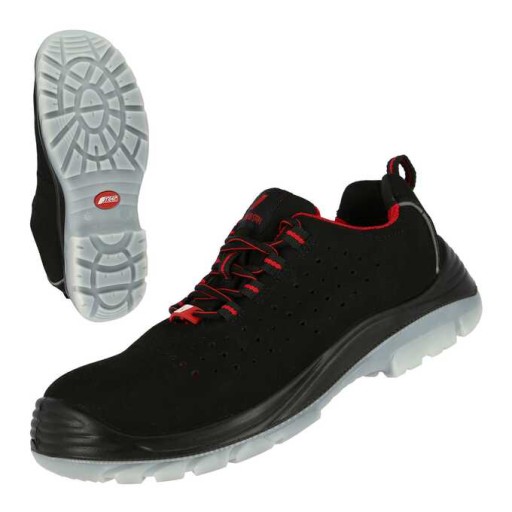 Półbuty robocze Nitras Micro Step I 7420, klasy S1P SRC ESD. Cholewka wykonana z wytrzymałej mikrofibry w kolorze czarnym, z elementami odblaskowymi. Perforowana powierzchnia buta zapewnia doskonałą cyrkulację powietrza.