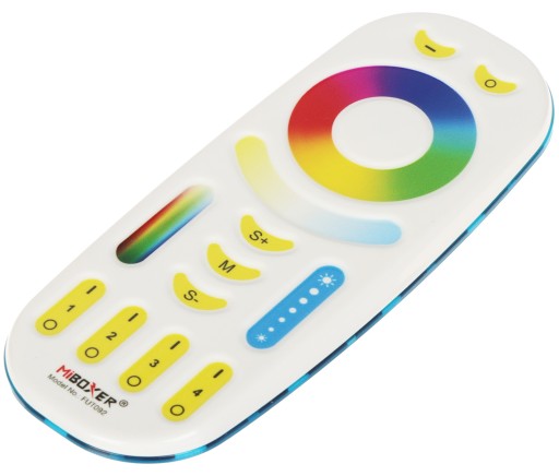 Pilot FUT092 przeznaczony jest do sterowania kontrolerami oświetlenia LED serii FUT035S / FUT036S / FUT038S / FUT039S / WL5. Komunikacja między urządzeniami odbywa się za pomocą fal radiowych w paśmie częstotliwości 2.4 GHz. Pilot wyposażony jest w dotykowe przyciski, umożliwiające niezależne sterowanie załączeniem, jasnością oraz barwą światła w maksymalnie 4 strefach. Sterowniki MiBOXER umożliwiają podzielenie oświetlenia na maksymalnie 4 strefy i niezależne sterowanie strefami za pomocą pilota. Dzięki funkcji repeatera, jeśli zachowana jest odległość ≤30m pomiędzy kontrolerami, możliwe jest przekazanie sygnału sterującego do sterowników znajdujących się poza bezpośrednim zasięgiem pilota.