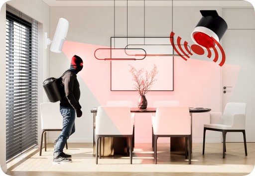 - W przypadku włamania system natychmiast wyśle powiadomienie na Twój telefon w formie wiadomości SMS lub alarmu głosowego.