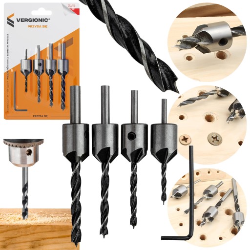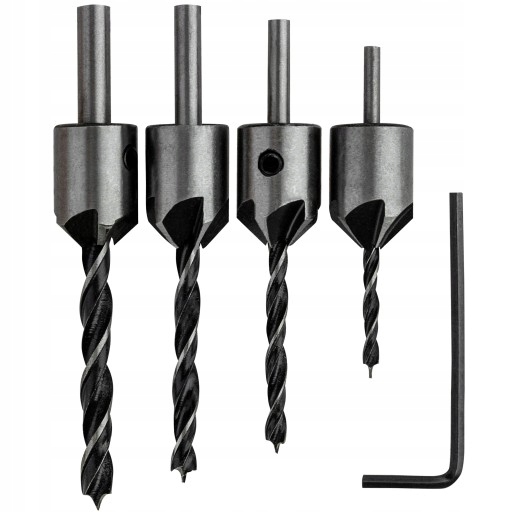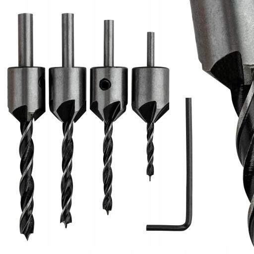 ✴️ Zestaw zawiera cztery wiertła o różnych średnicach z pogłębiaczami 15 mm, które pozwolą na precyzyjne i efektywne wiercenie.