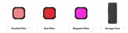Pakiet 3 filtrów stworzonych do pracy pod wodą w połączeniu z wodoodpornym etui. Kompatybilne z kamerą GoPro Hero 9 Black pozwolą na wykonanie ujęć o pełnym przekroju barw pod powierzchnią, niwelując nasycenie koloru niebieskiego czy zielonego. Każdy z filtrów został przystosowany do innego środowiska i głębokości, by zapewnić kompleksową pracę w każdych warunkach.