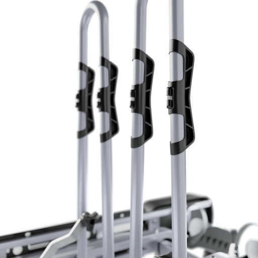 Tytan Plus posiada nowy sposób mocowania rowerów za ramę. Uchwyty mocujące wykonane zostały z gumy, dzięki czemu ochrona przed zarysowaniami jest jeszcze większa. Rower mocujemy za pomocą pasków z gumowymi klamrami z żabką.