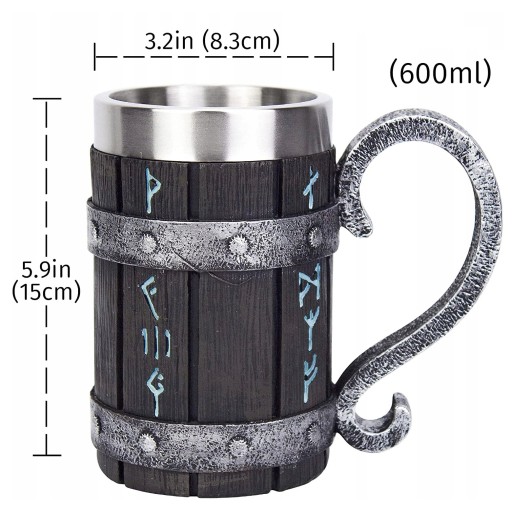 ПИВНОЙ МУФЛ НЕРЖАВЕЮЩАЯ СТАЛЬ С РУЧКОЙ В ВИНТАЖНОМ ВИКИНГОВСКОМ СТИЛЬ 600МЛ