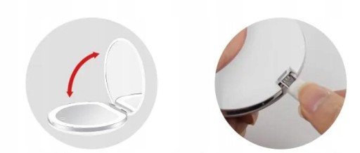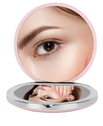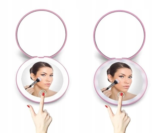 ⭐ Składane i stylowe lustro LED to element, którego nie może zabraknąć w damskiej torebce! Zawiera dwa lustra – jedno klasyczne i drugie, które powiększa do 2 razy. Zobaczysz nawet najmniejsze niedoskonałości makijażu lub włosów, które możesz precyzyjnie ułożyć.