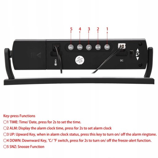 Funkcja termometru, wyposażona w 2-metrowy przewodowy czujnik temperatury, mierzy temperaturę wewnątrz i na zewnątrz z wysoką dokładnością ± 1,0 ℃. Tymczasem to urządzenie może swobodnie przełączać wyświetlacz stopni celsjusza i fahrenheita.