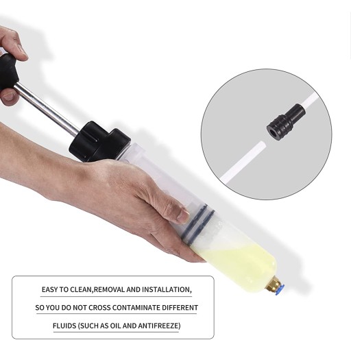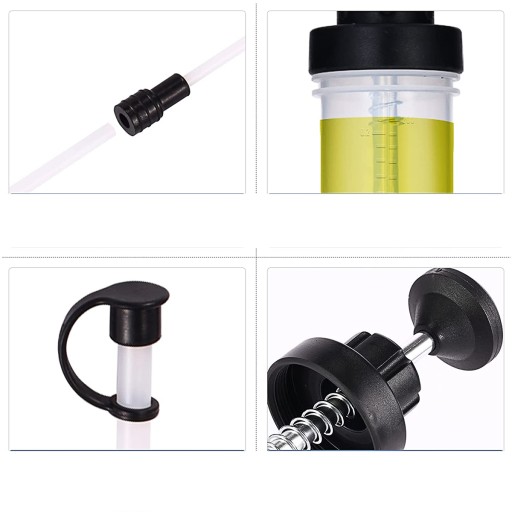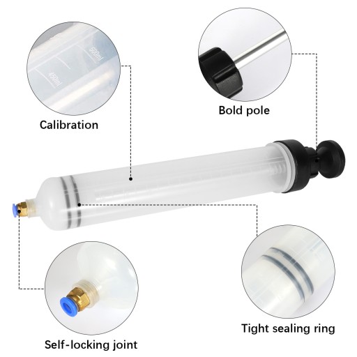 Strzykawka do oleju jest wyposażona w rurki przedłużające o długości 20,5 cm i 22,5 cm, przedłużony wąż strzykawki ułatwia pobieranie lub wstrzykiwanie cieczy, a wąż ten można odłączyć, łatwo go wyczyścić i konserwować.