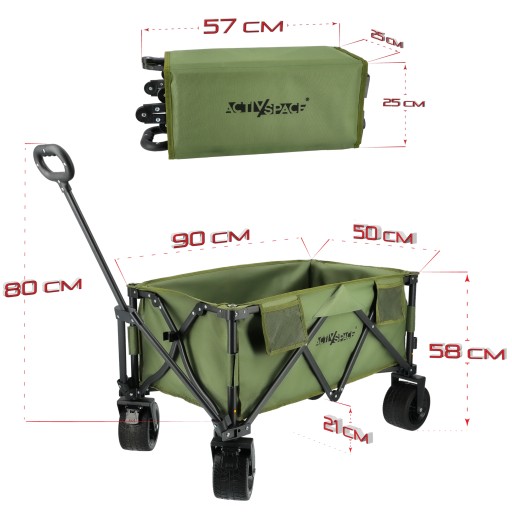Wózek turystyczny kempingowy plażowy składany - army green