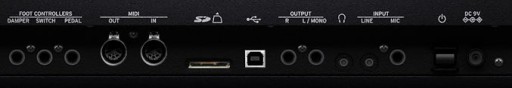 Inne złącza - In, Out, USB typ B x 1, interfejs USB-MIDI, interfejs USB Audio, slot na kartę SD (do 2 GB [SD], do 32 GB [SDHC]),