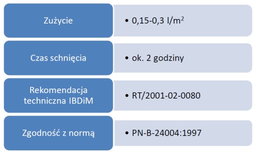 Masę nanosić za pomocą wałka, pędzla lub urządzeniem natryskowym, jedną możliwie cienką warstwą. Nie należy intensywnie rozcierać/wcierać produktu. Intensywne wcieranie produktu powoduje przebarwienia oraz utratę srebrzystego koloru powłoki.
