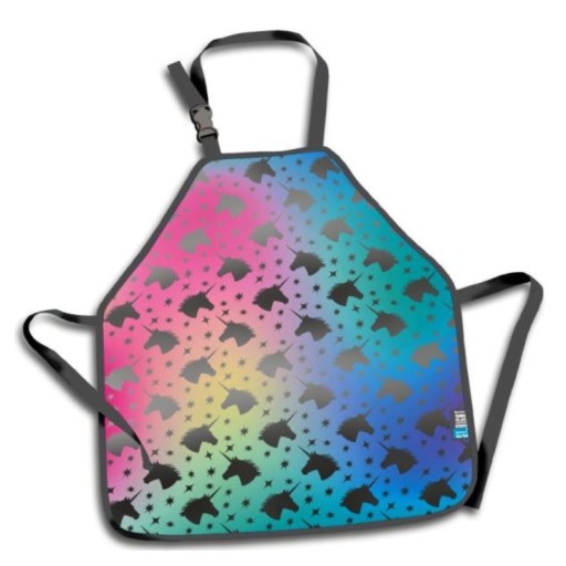 Fartuszek wyróżnia się oryginalną grafiką z motywem Ombre Unicorns, w której błyszczące jednorożce ożywiają piękne pastelowe kolory.