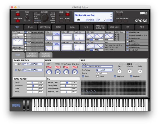 Dostępny jest również dedykowany edytor KROSS 2 i edytor wtyczek. Umożliwiają one edycję podczas przeglądania wielu parametrów na pierwszy rzut oka na komputerze lub pozwalają używać KROSS 2 jako syntezatora programowego z poziomu DAW.