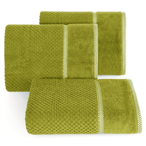 Bardzo chłonny ręcznik z miękkiej bawełny frotte z delikatnym tłoczeniem krateczki i bordiurą o tym samym, wyraźniejszym wzorze. Bardzo chłonny, łatwy w praniu. szerokość: 70 cm, długość: 140 cm, kolor: oliwkowy, Gramatura: 540 GSM, Skład: 100% bawełna; część ozdobna: 69% bawełna, 31% poliester