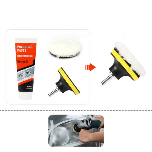ZESTAW do Polerowania REGENERACJI REFLEKTORÓW LAMP Pasta Polerska Płyn