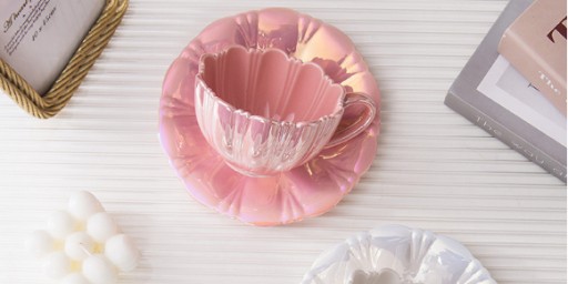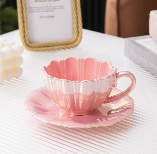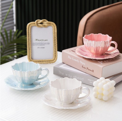 Filiżanka ze spodkiem perłowa muszelka 240 ml 3341