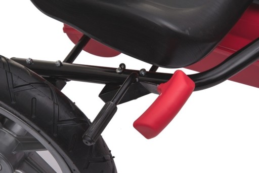 Stalowa mocna konstrukcja, gumowe pompowane koła, łożyskowane koła, hamulec ręczny oraz bieg "neutral"