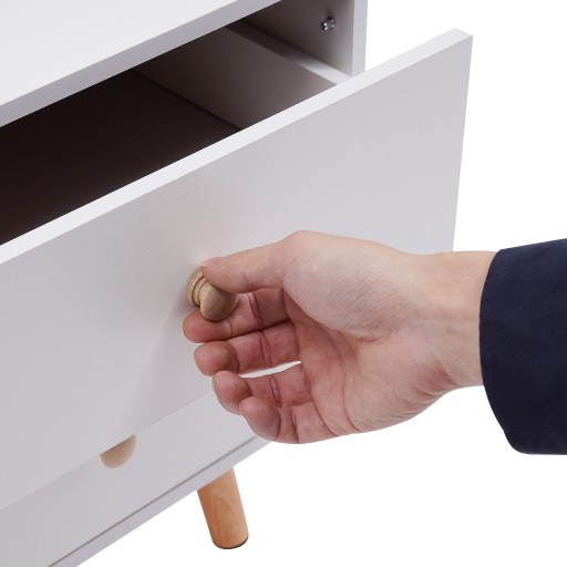 Szafka nocna jest nie tylko solidna i trwała, ale także starannie zaprojektowana i funkcjonalna. Dwie oddzielne szuflady pomieszczą różną biżuterię, kosmetyki itp., a otwarta przestrzeń na zewnątrz może posłużyć także do umieszczenia innych przedmiotów, takich jak lampy, książki czy kubki. Dzięki temu produktowi możesz stworzyć czyste i wygodne środowisko sypialni, wprawiając Cię w dobry nastrój każdego dnia!