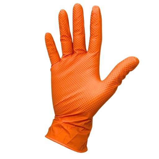GRIPZZLY - RĘKAWICE, NITRYLOWE, BEZPUDROWE Z DIAMENTOWĄ TEKSTURĄ - ROZMIAR M / POMARAŃCZOWE