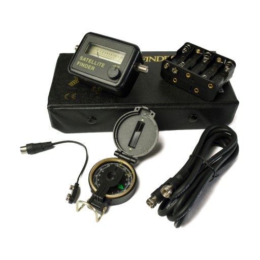 W komplecie znajduje się również pojemnik na 10 baterii LR06 (AA) aby bez potrzeby podłączania odbiornika móc zasilić wskaźnik i w ten sposób ustawić antenę. Aby jeszcze łatwiej było ustawić anteną w odpowiednim kierunku zestaw zawiera bardzo dobrze wykonany kompas.Całość zapakowana w poręczne i ładne etui.